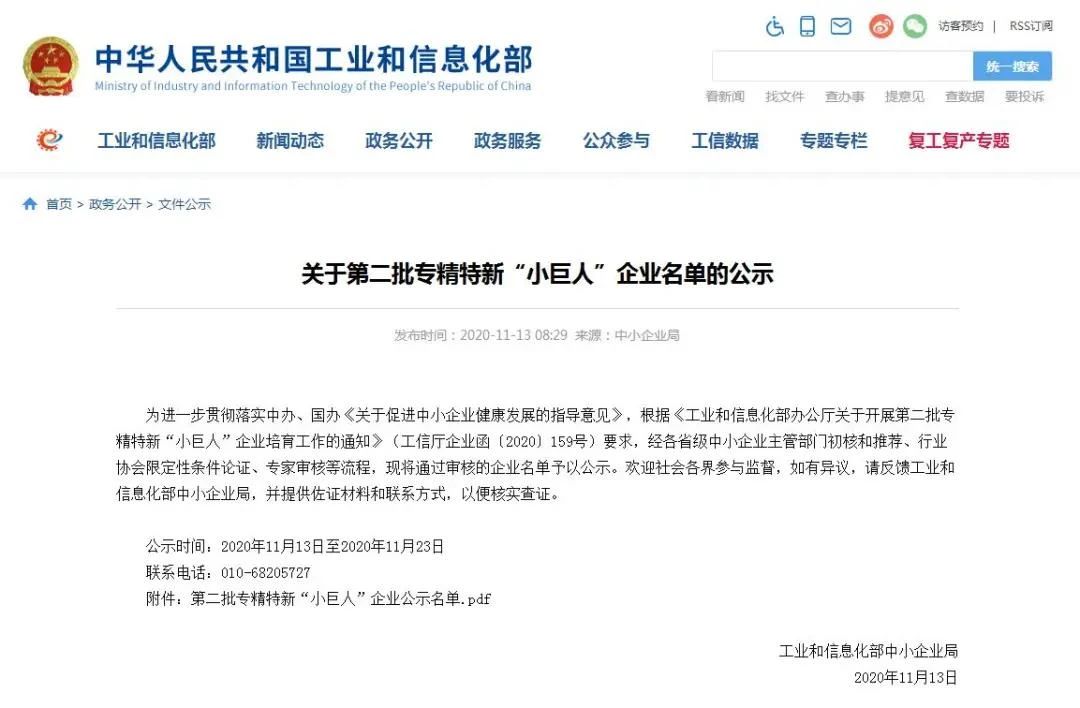 此次專精特新“小巨人”企業(yè)的評選是根據(jù)《工業(yè)和信息化部辦公廳關(guān)于開展第二批專精特新“小巨人”企業(yè)培育工作的通知》(工信廳企業(yè)函〔2020〕159號)要求,經(jīng)各省級中小企業(yè)主管部門初核和推薦、行業(yè)協(xié)會限定性條件論證、專家審核等流程,歷時4個月的時間,最終由工業(yè)和信息化部認定了一批創(chuàng)新能力強、專業(yè)化發(fā)展明顯、管理水平先進、轉(zhuǎn)型升級突出、市場占有率高、質(zhì)量效益較好的專精特新“小巨人”企業(yè)。