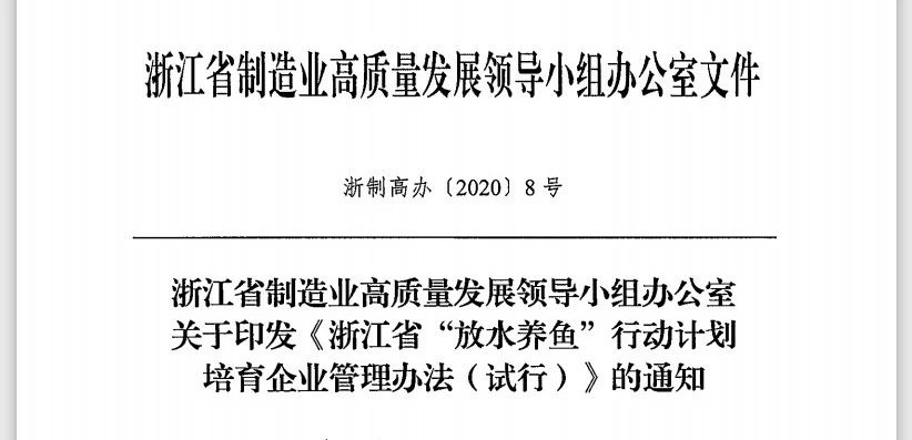 根據(jù)《浙江省“放水養(yǎng)魚”行動計劃》工作要求,重點扶持一批細分市場有競爭優(yōu)勢、成長性好、具有關鍵核心技術的優(yōu)質企業(yè),進一步鞏固提升浙江省制造業(yè)、民營經(jīng)濟在全國的領先地位。